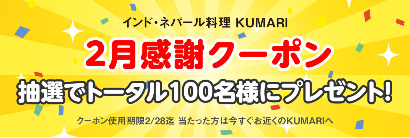 2月感謝クーポン! 抽選でトータル100名様にプレゼント!