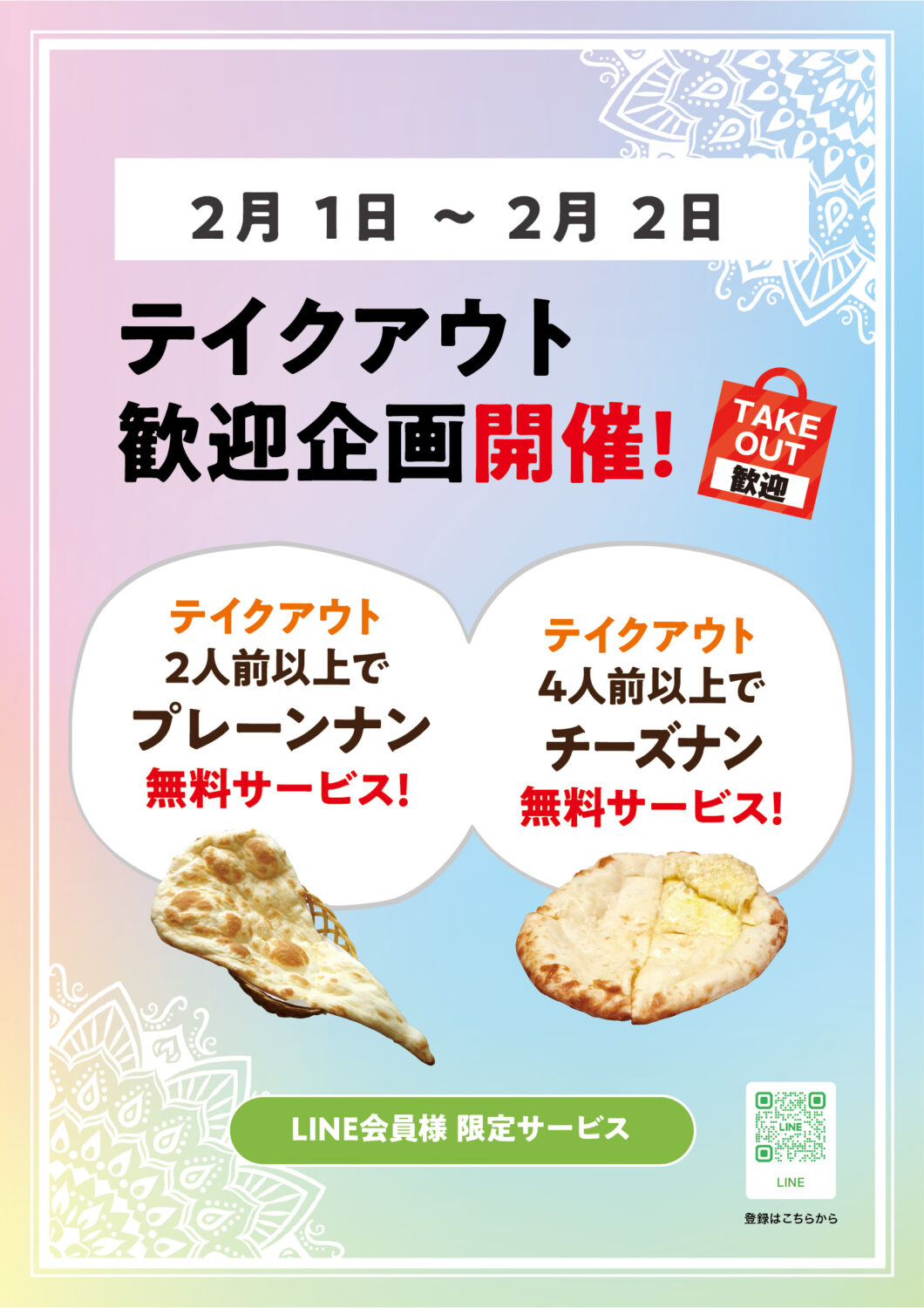 2/1〜2/2 テイクアウト歓迎企画 & スープ無料