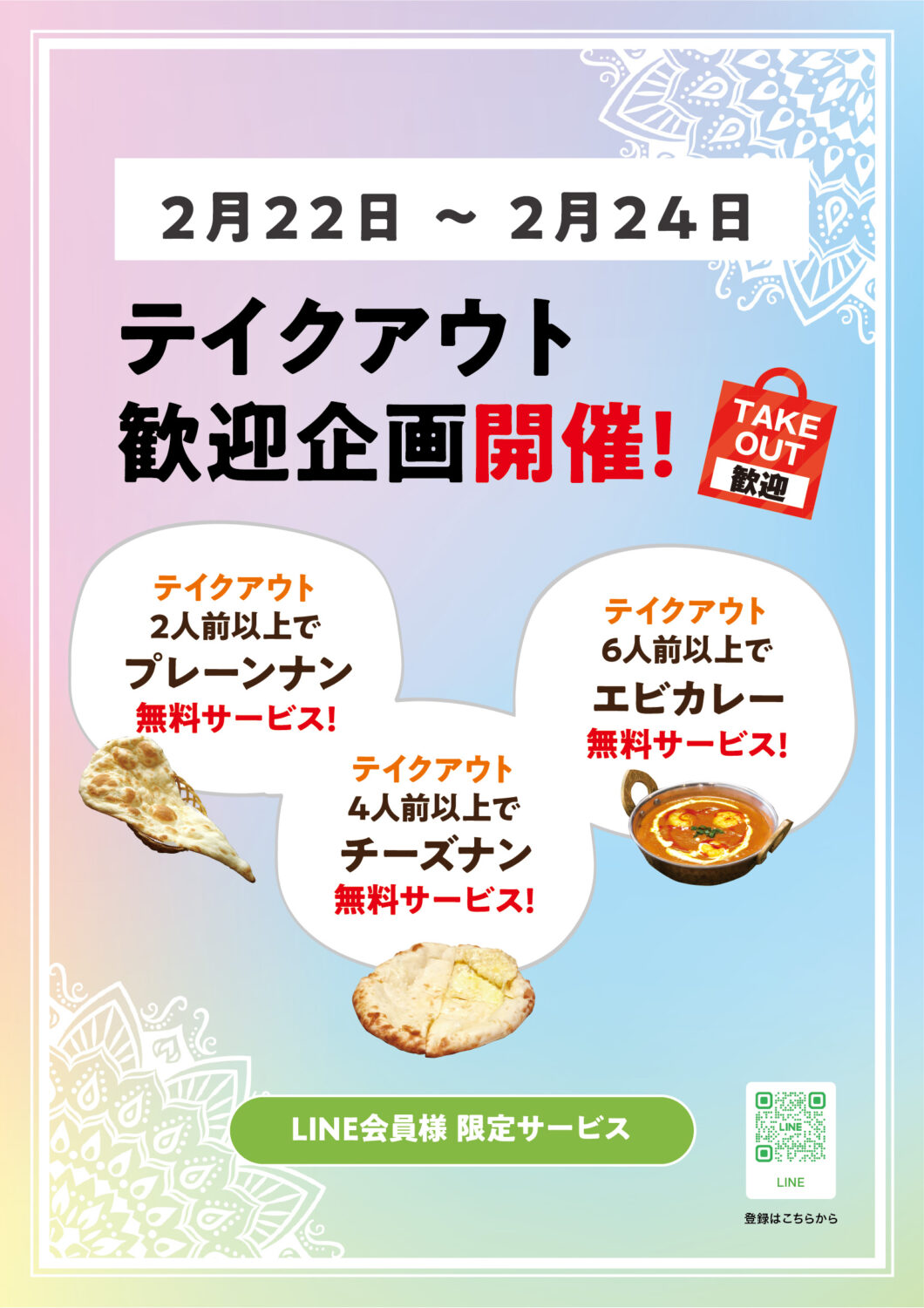 2/22〜24 テイクアウト歓迎企画 & スープ無料
