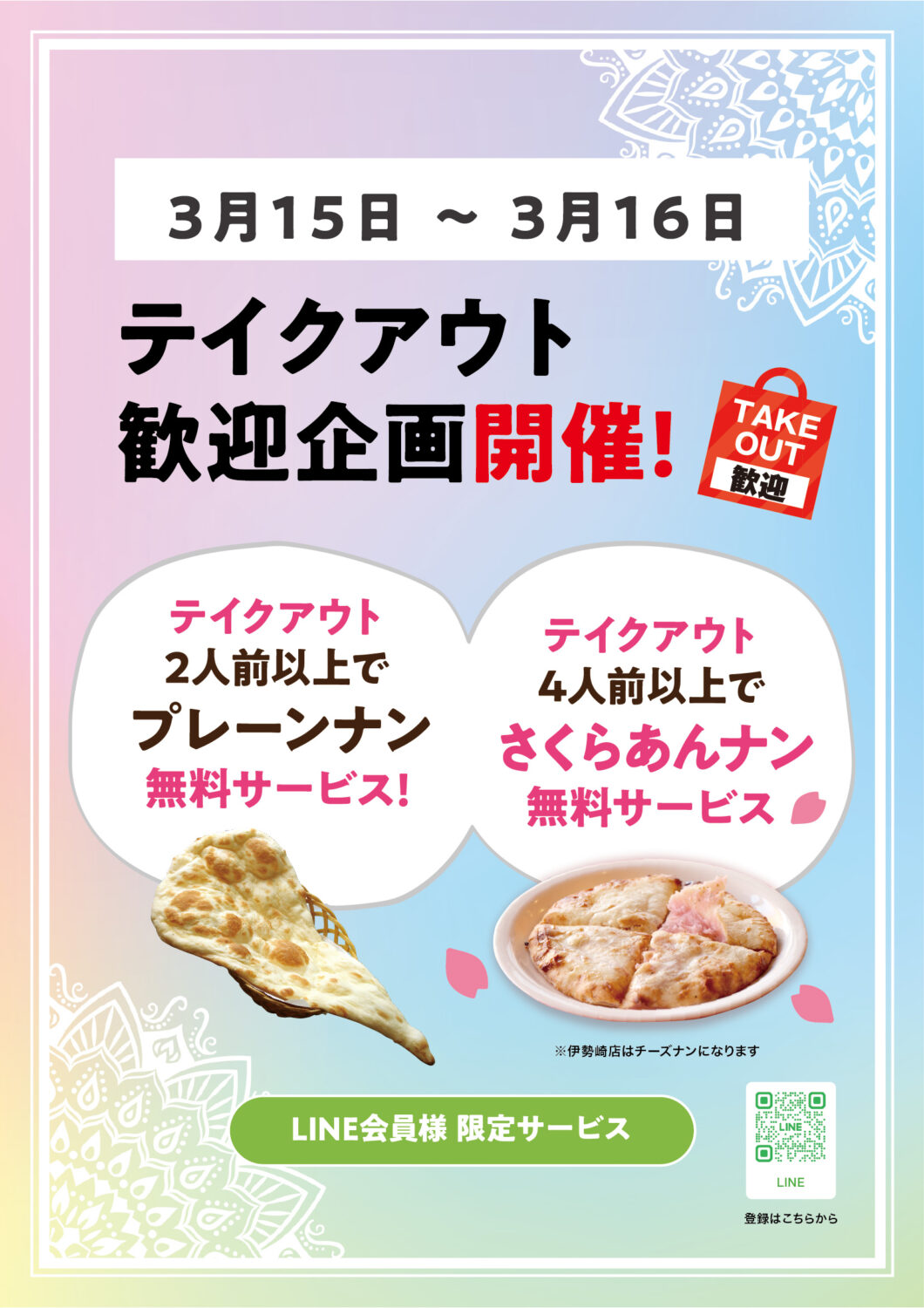 3/15〜16 テイクアウト歓迎企画 & スープ無料