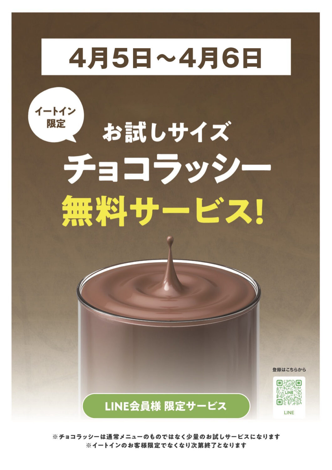 4/5〜4/6 テイクアウト歓迎企画 & ミニチョコラッシー無料