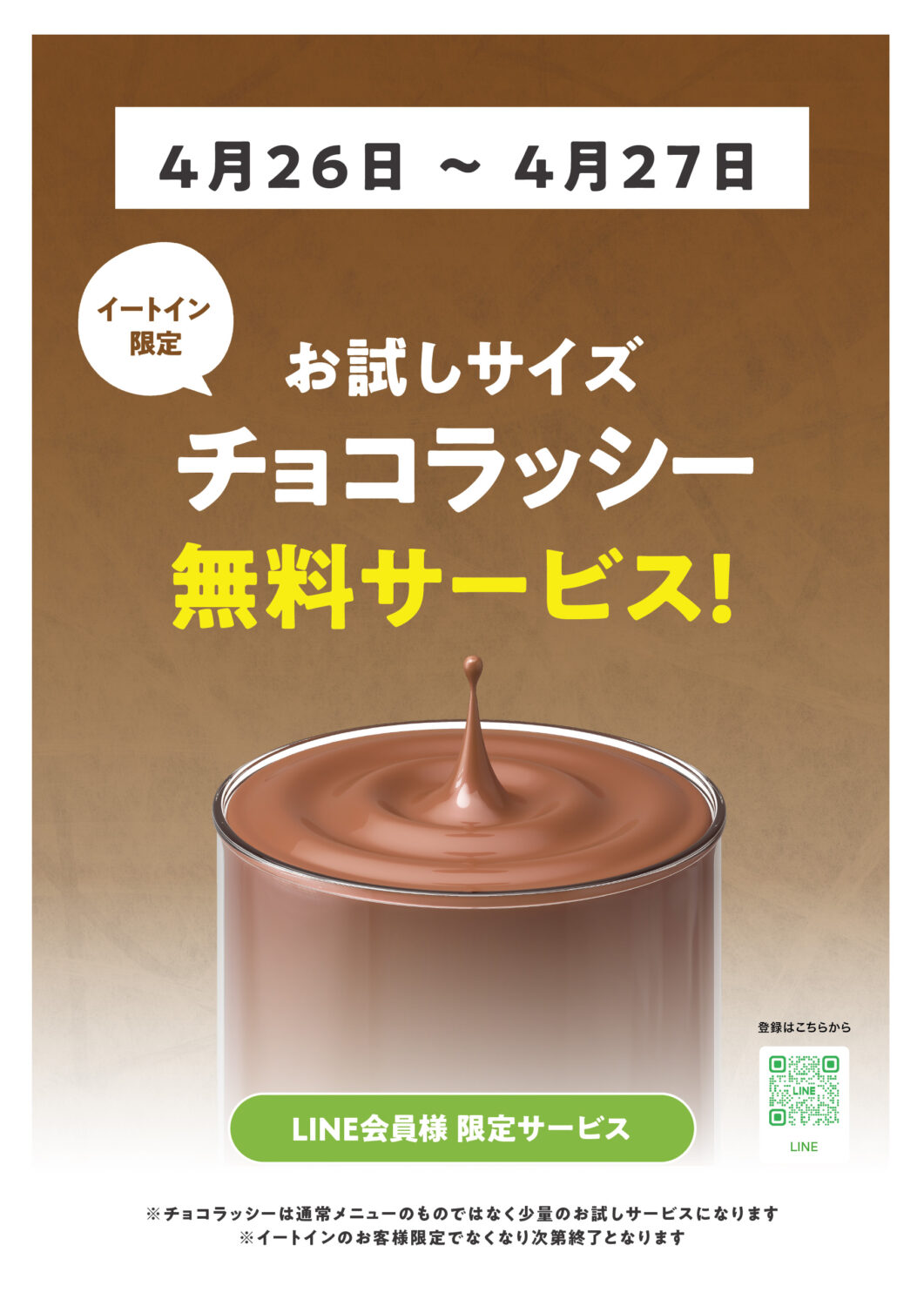 4/26〜4/27 テイクアウト歓迎企画 & ミニチョコラッシー無料