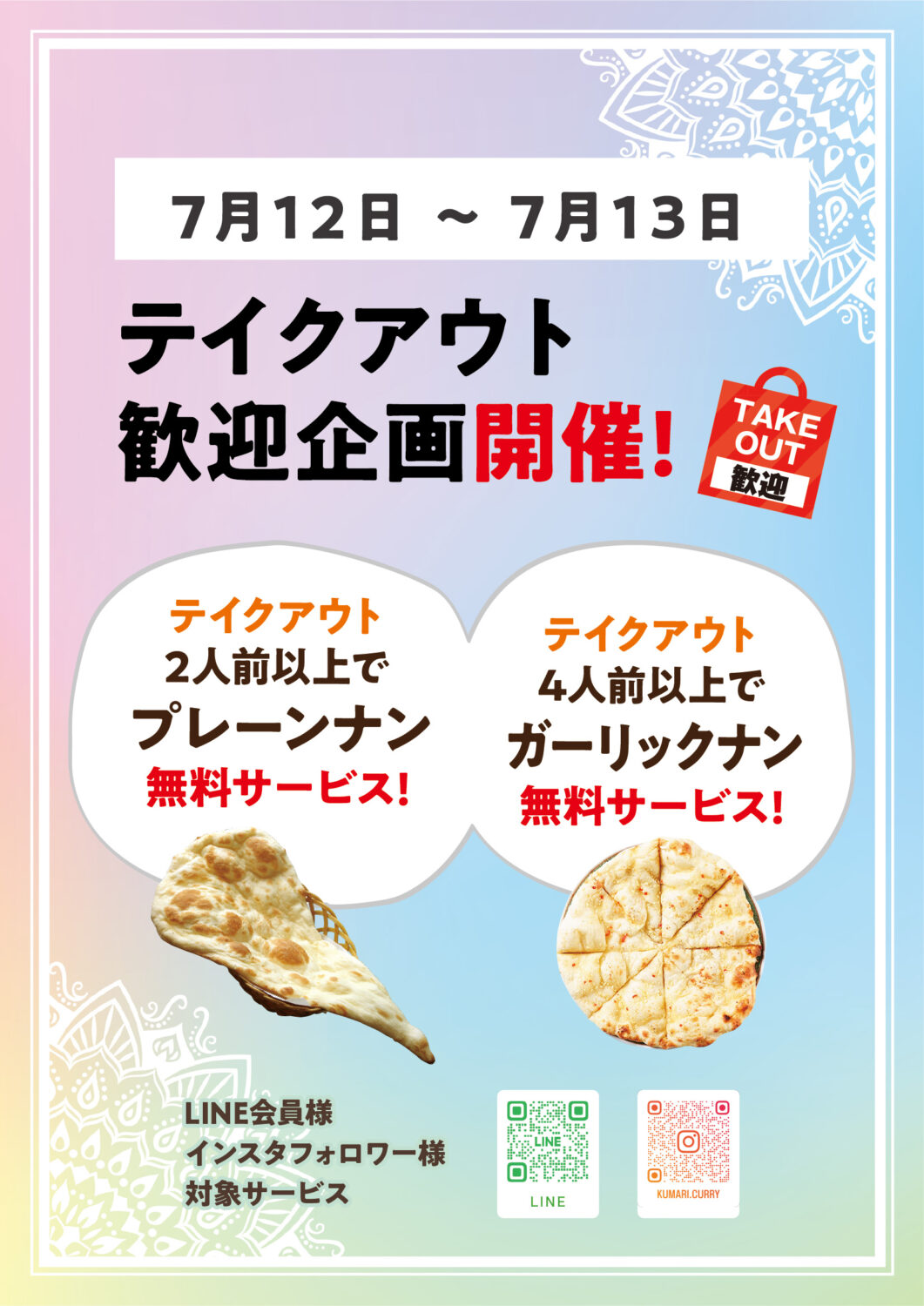 ①テイクアウト カレーメニュー2人前以上ご注文で