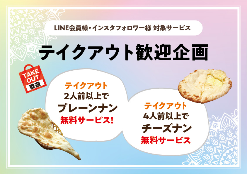 ①テイクアウト カレーメニュー2人前以上ご注文で