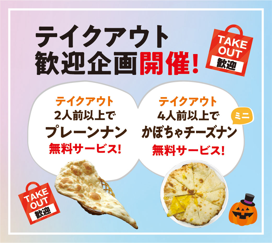 ミニかぼちゃチーズナン1枚無料サービス!
