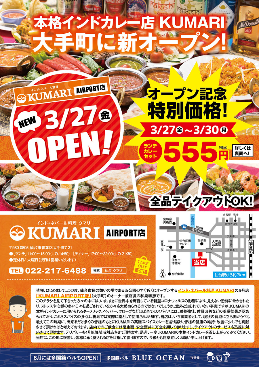 3/27 KUMARI AIRPORT店 新オープン!!