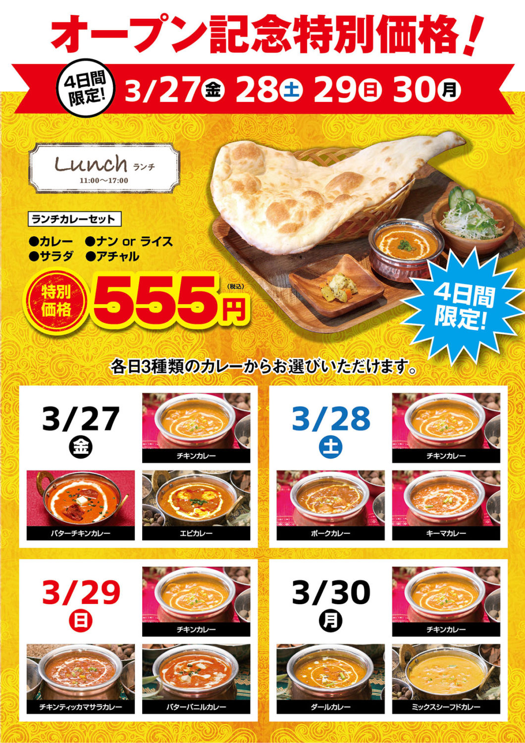 オープンを記念して3/27(金)〜3/30(月)の4日間は