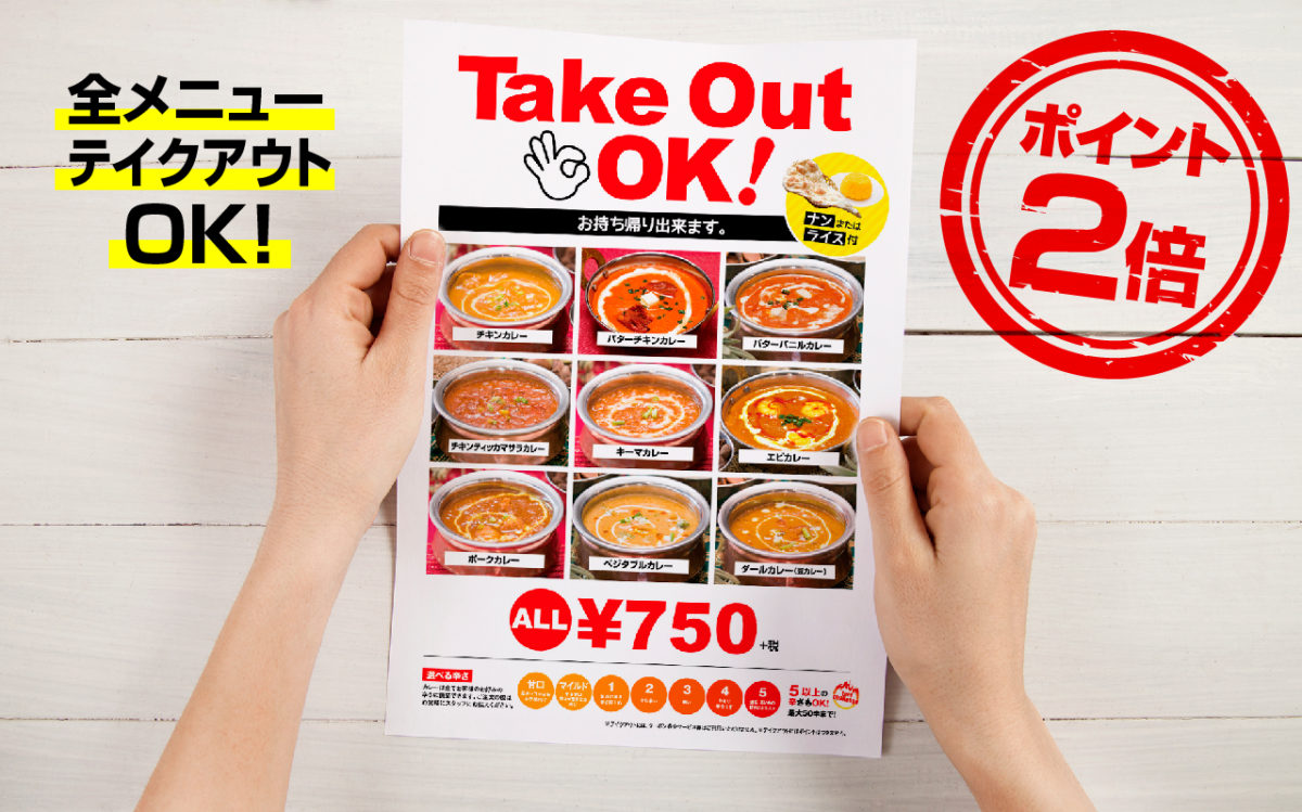 1/10〜12 テイクアウト歓迎企画 & イートインスープ無料...    1/10(土)〜1/12(月祝)の3連休は LINE会員様限定 テイクアウト歓迎企画を実施いたします(^^)   ①テイクアウト カレーメニュー2人前以上ご注文で プ...