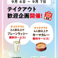 9/13〜15 テイクアウト歓迎企画 6人前以上で『ハニーチーズナン』