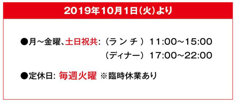 【⚠️ 2019年10月より営業時間が変更になりました ⚠️】