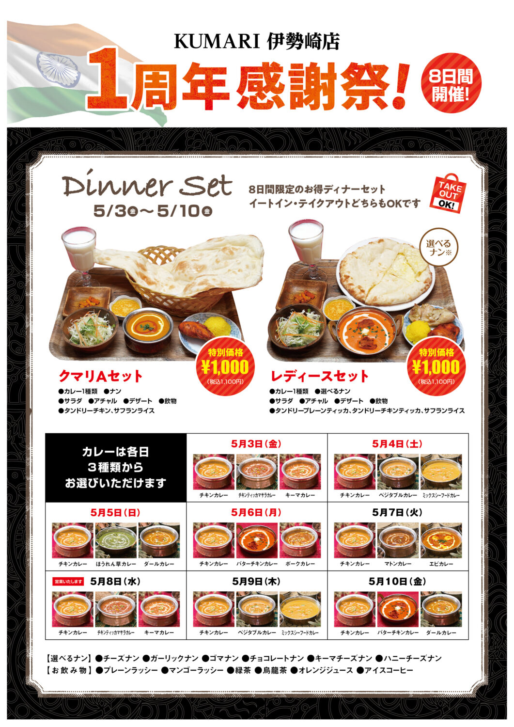 お好きなカレーをぜひ食べにきてくださ〜い😊