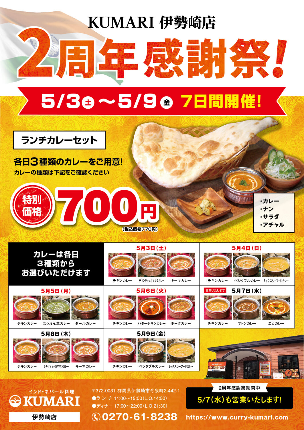 また、伊勢崎店は通常であれば水曜定休日ですが