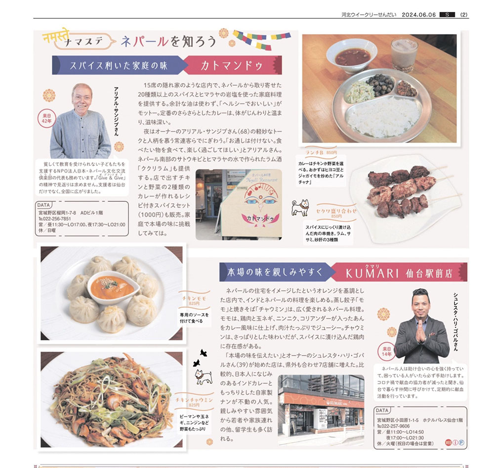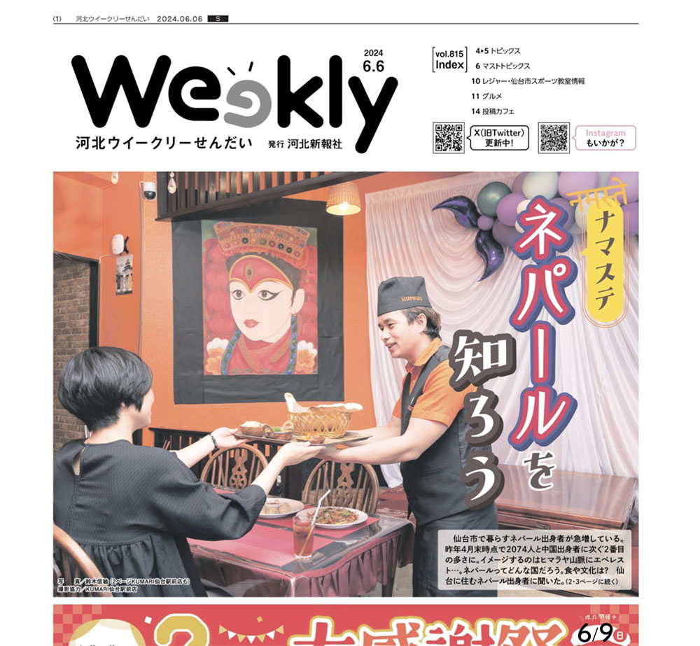 河北ウイークリーせんだい6/6号で当店KUMARIを掲載していただきました✨