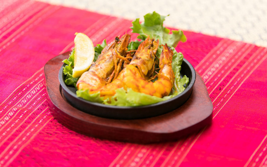 大きな殻付きのエビを香ばしく焼き上げました。